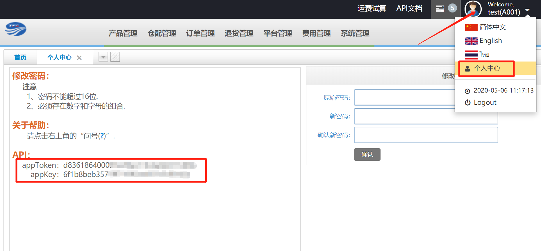 2.點(diǎn)擊右上角頭像,打開個(gè)人中心找到Api信息;