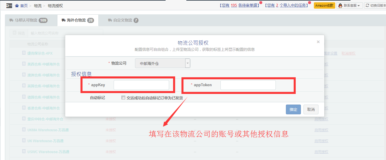 (*填寫物流公司的賬號密碼或者該物流公司提供的海外倉授權(quán)信息)