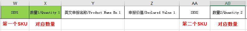 3.如果訂單是多SKU合包,在SKU1、SKU2、SKU3等對應(yīng)表格內(nèi)依次填寫SKU和數(shù)量信息。