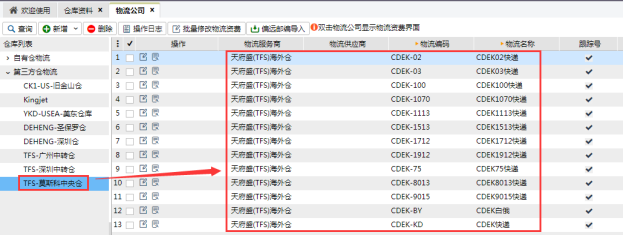 1、在【物流公司】頁面是無法新增天府盛(TFS)海外倉物流的。